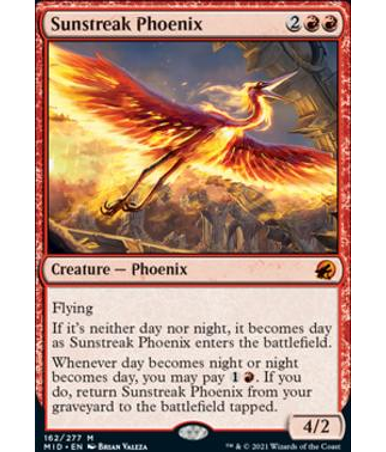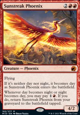 When day becomes night or night becomes day, you may pay . If you do, return Sunstreak Phoenix from your graveyard to the battlefield.