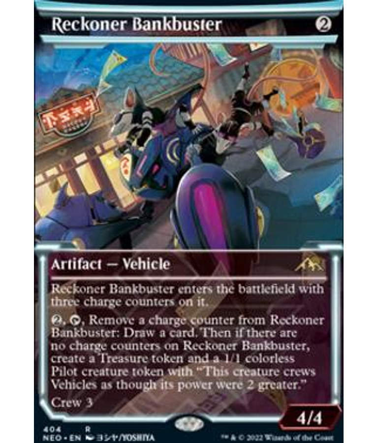 , Remove a charge counter from Reckoner Bankbuster: Draw a card. Then if there are no charge counters on Reckoner Bankbuster, create a Treasure token and a 1/1 colorless Pilot creature token with "This creature crews Vehicles as though its power were 2 greater."Condición: NM